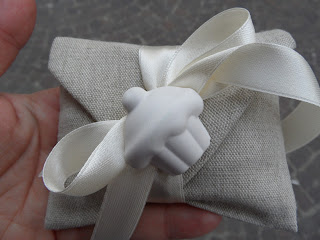 Bustina cotone ecrù cucita a mano, Bomboniera matrimonio, Cresima, Comunione